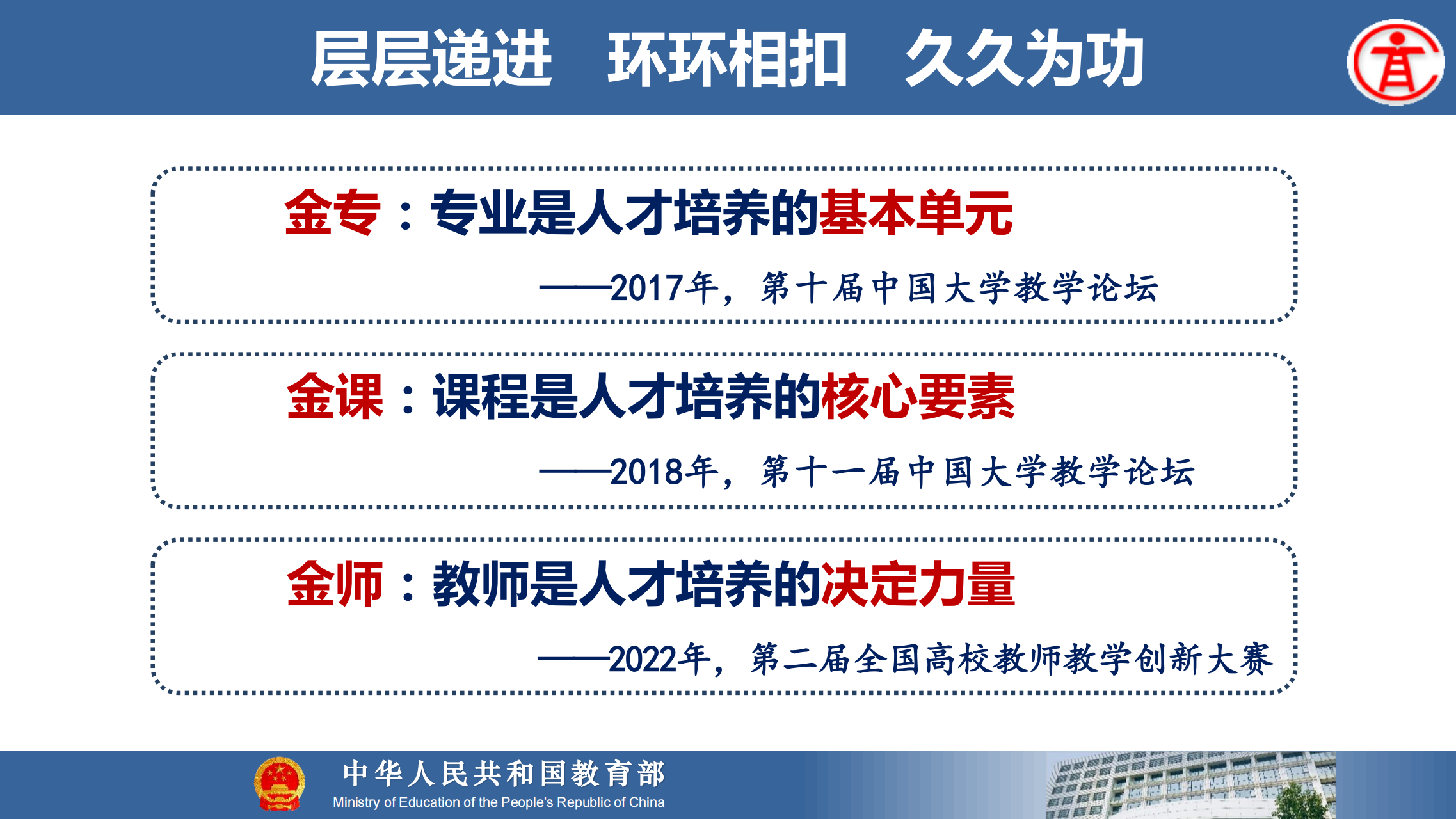 从2017年提出“金专”、到2018年提出“金课”,再到这次提出“金师”;从“金课”两性一度到“金师”四个条件,吴岩司长带领高等教育司层层递进、环环相扣、久久为功,推进了一场新时代高等教育教学改革的深刻变革和质量革命。
