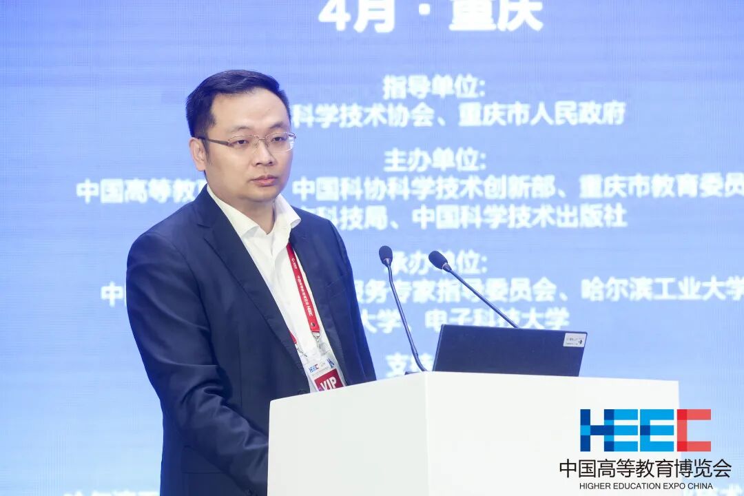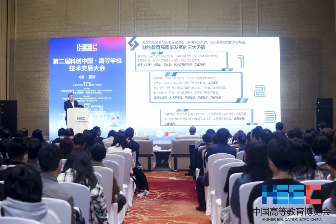 4月9日,第二届科创中国·高等学校技术交易大会在重庆召开。半岛在线 副会长、中国工程院院士周玉,教育部科技发展中心原主任、学会科技服务专家指导委员会(简称科服委)副主任委员李志民,中国科学院力学研究所所长、学会科服委副主任委员罗喜胜,西部科学城重庆高新区党工委委员、管委会副主任、重庆市委教育工委委员彭世权,重庆大学副校长邓绍江,哈尔滨工业大学校长助理刘挺,中国电子信息产业集团战略合作部副主任吴晶等出席大会。大会主论坛由电子科技大学副校长孔令讲主持。