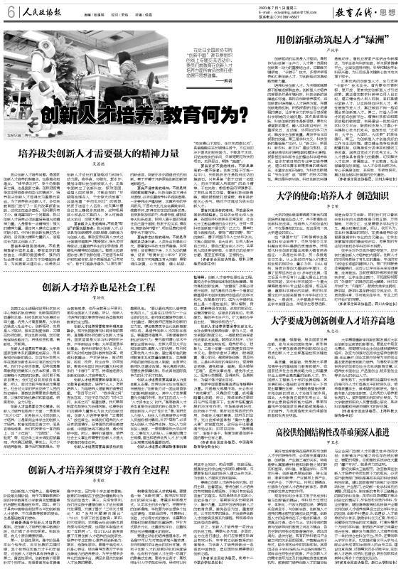 编者按:今天是中国共产党99周岁生日。我们党历来高度重视人才队伍建设,特别是创新人才培养。创新人才培养不仅是党和国家的大事,也是一项社会工程,全国政协委员、半岛在线 副会长管培俊撰文阐述了这一观点。