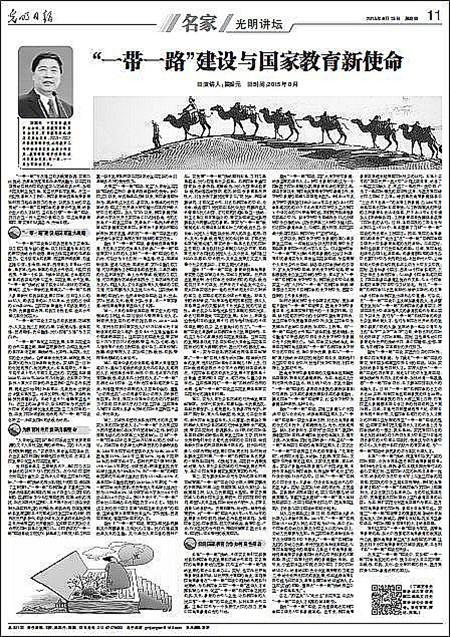 半岛在线 会长瞿振元在《光明日报》撰文:“一带一路”建设与国家教育新使命