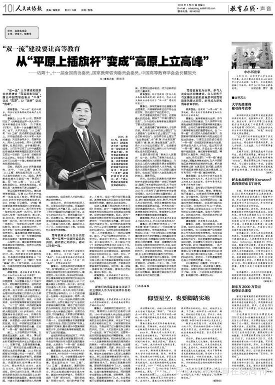 “双一流”建设要让高等教育从“平原上插旗杆”变成“高原上立高峰”