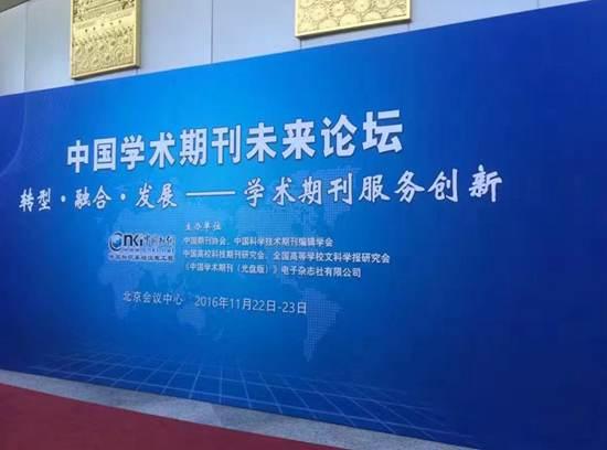2016年11月22-23日,以“转型·融合·发展——学术期刊服务创新”为主题的中国学术期刊未来论坛在京举行。该论坛由中国期刊协会、中国科学技术期刊编辑学会、中国高校科技期刊研究会、全国高等学校文科学报研究会、《中国学术期刊(光盘版)》电子杂志社有限公司联合主办、同方知网承办,来自学术期刊出版行业的2300多名代表参会。