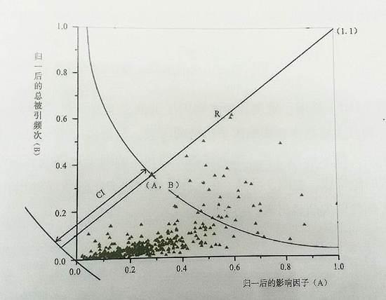 此次期刊定量评价指标有:期刊影响力指数(Journal Clout Index,简称CI),他引总被引频次,他引影响因子。需要说明的是,CI等位线对单一指标的一般性奇异行为具有较好抑制效果(见下图),但对特殊奇异现象,特别是单纯为追求大TC(他引总被引频次)盲目扩大发文量而降低学术质量的情况,抑制效果尚不理想,这种情况干扰了CI排序的公正性。为解决这个问题,《中国学术期刊国际引证年报》,利用期刊量效指数(Journal Mass Index,简称JMI)进行修正。 JMI是期刊影响因子对应的发文量与该刊影响因子的比值,意义是该刊每产生单位影响因子所需要的论文数量。JMI越大表示该刊越“臃肿”,也就是发文规模很大而效用不高。