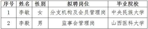 秘书处于2018年3月29日发布公开招聘工作人员公告。经过报名、资格审查、笔试和面试、考察及体检等环节,确定拟聘用人员2人。现将拟聘用人员名单公示如下: